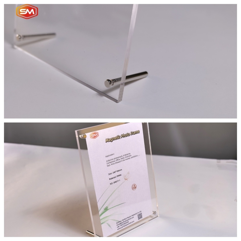 ตัวถือภาพใส เช่นกรอบภาพนี้ มีแผ่น Lucite ขนาด 3 มิลลิเมตร หรือ 5 มิลลิเมตร และ 4 ชุดของสกรูผูกพันเคลียร์คุณสามารถเปลี่ยนภาพได้ง่ายๆ ในทิศทางตั้งหรือแนวราบ.