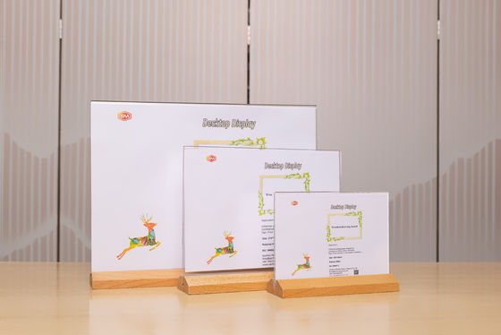กรอบภาพแอครีลใส A4 ที่มีฐานไม้